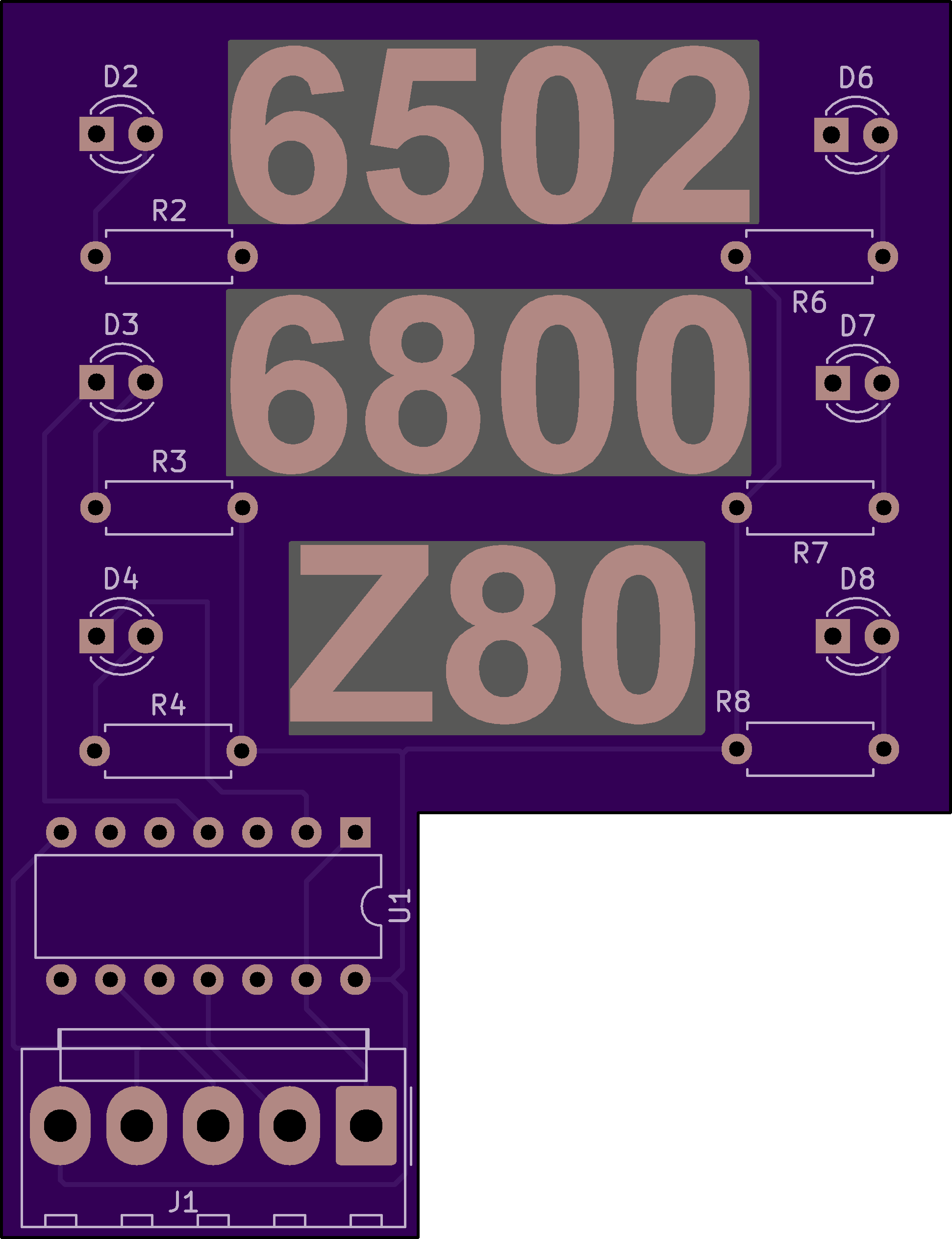 This is a plug-in board for an OSI Model 510 board. The 510 has 3 CPU’s and this board provides visual indication to which CPU is active. This was created to demo the OSI Challenger III at VCF East in 2026.
