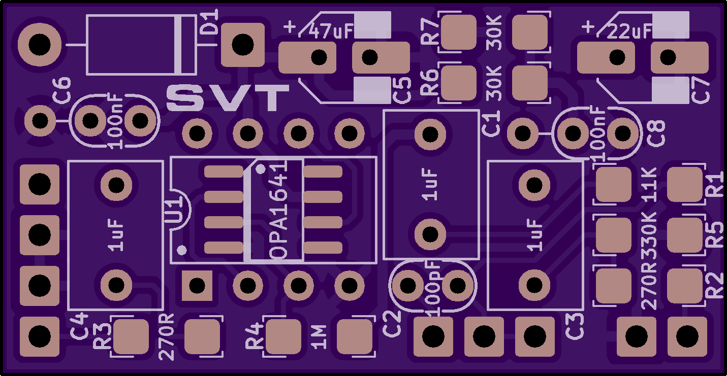 Simple clean gain block, can use 9-18V DC power. Provides 0-20dB of gain.