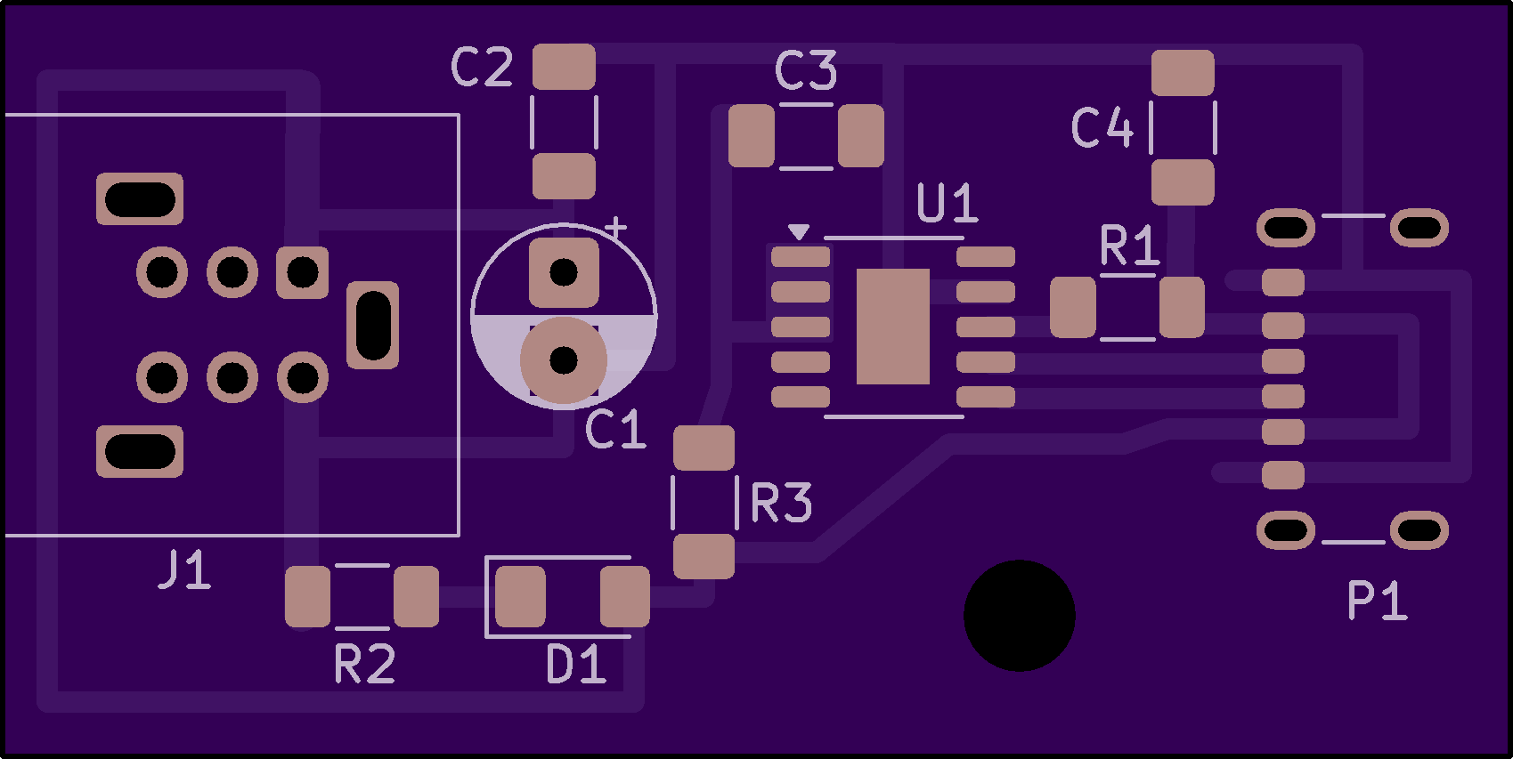 2 layer board of 1.69 x 0.85 inches (43.0 x 21.5 mm)
